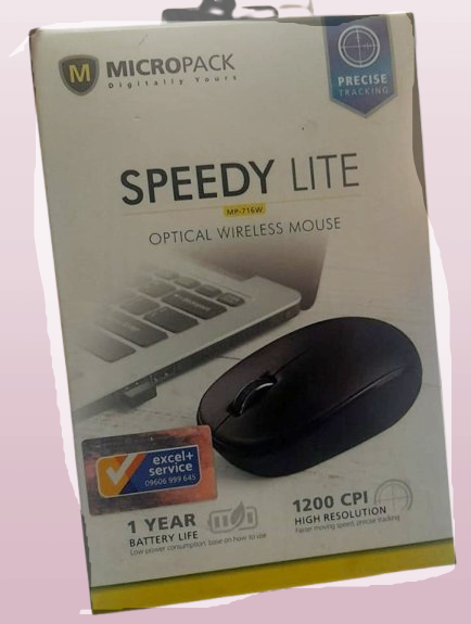 The Micropack MP-716W Wireless Mousehas a 1000dpi resolution, a 2.4G type interface, and a 5 million button life with a 3D button. The transmission distance is 8-10 meters with a low power consumption in this mouse. This exclusive Micropack mouse has now expanded its product line to include mobile accessories, while still providing high-quality, long-lasting, and technologically advanced products. The MP-716W Wireless Mouse comes with a one-year warranty.